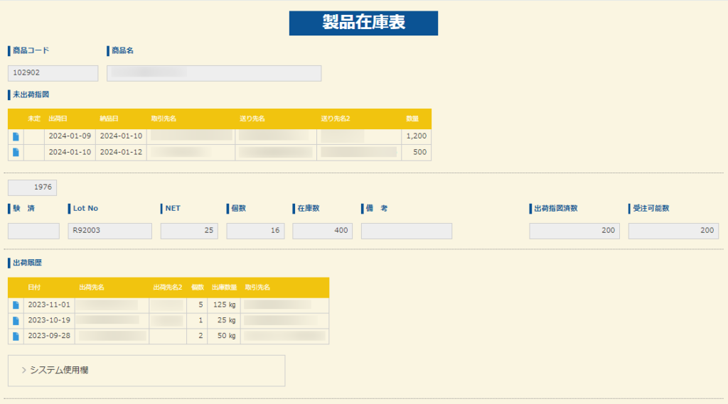 - kintoneの機能を使って、受注残状況や出荷履歴などを関連レコード一覧で表示できる