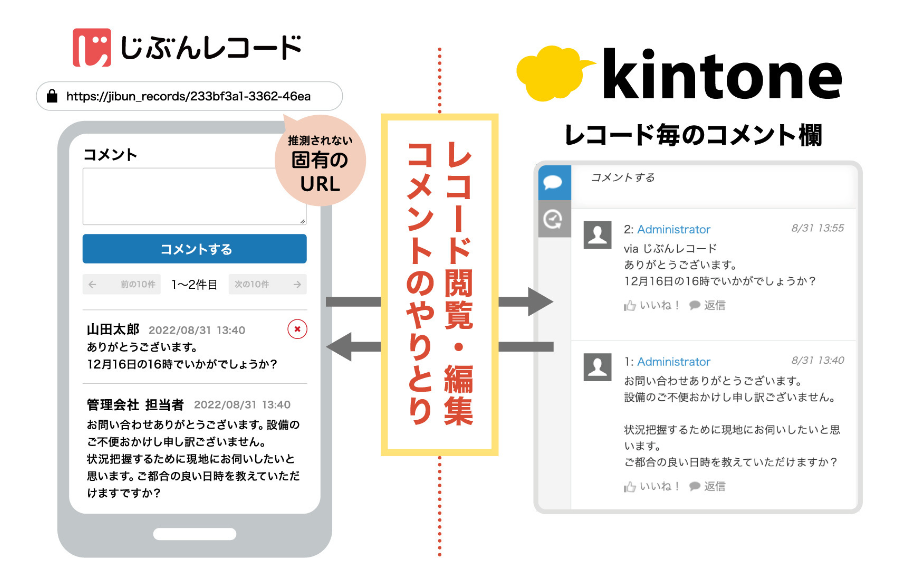 kintoneとExcelにはそれぞれコメント機能が搭載されています。
