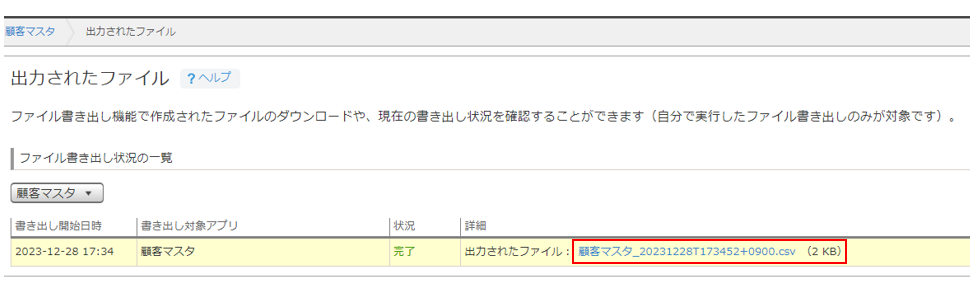 ③ファイルの書き出しを終えたら、ダウンロード可能なファイルのリスト内にある該当ファイルをダウンロードします。