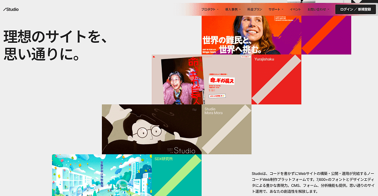 Studioは、コードを書かずにWebサイトの構築から公開、運用まで完結するノーコードWeb制作プラットフォームです。豊富なフォントやデザインエディタを用いて、直感的にサイトを作成できます。